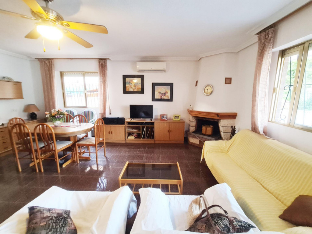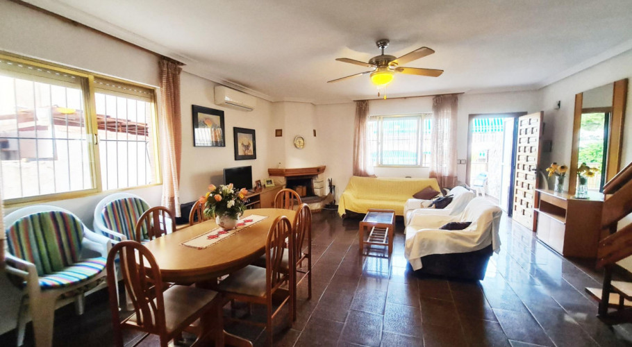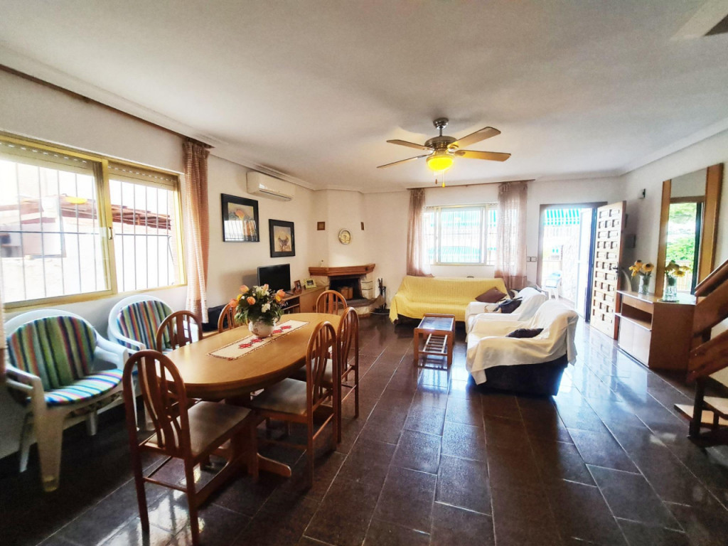 Entrando a la propiedad desde la calle encontramos a la derecha una terraza lateral comunicada con el patio trasero donde tenemos la barbacoa, la subida a la cocina y la escalera de bajada al sótano dotado con deposito de agua con bomba, a la izquierda de la entrada la rampa de acceso al garage o sótano privado se haya la subida a la gran terraza que da acceso a la vivienda en el espacioso salón comedor con chimenea propia y grandes ventanales , desde este accederíamos a la cocina totalmente equipada con despensa en su entrada, baño inferior y al dormitorio de la planta baja, desde su comedor subimos a la planta segunda donde podemos disfrutar de cuatro dormitorios dobles, dos de ellos orientados a el este, comunicados por un gran balcón y otros dos dormitorios orientados a poniente más un baño; desde una de las habitaciones salimos a la terraza trasera y desde esta a su vez podemos subir al gran solarium donde disfrutar de las innumerables horas de sol al año.