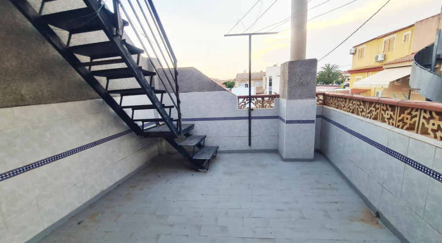 Fantástica propiedad semi adosada en esquina a escasos 200 metros de la playa, concretamente en la playa de las villas en la torre de la horadada, cuenta con sótano privado o espacio para más de 5 vehículos y un espacioso solarium terraza en la tercera planta.