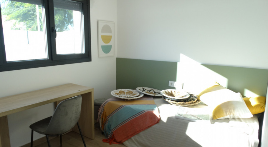 Las viviendas de planta baja tienen jardín y patio privado y las viviendas de planta alta cuentan con solárium y terraza.