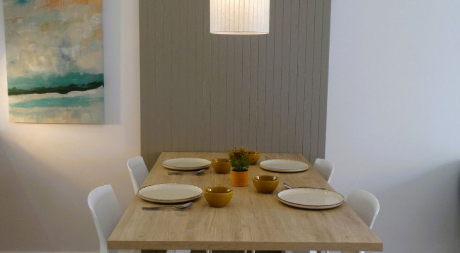 Se distribuyen en salón comedor integrados con la cocina terminada con mobiliario en alto brillo, opción de equipamiento de electrodomésticos, posibilidad de 2 o 3 dormitorios y 2 baños.