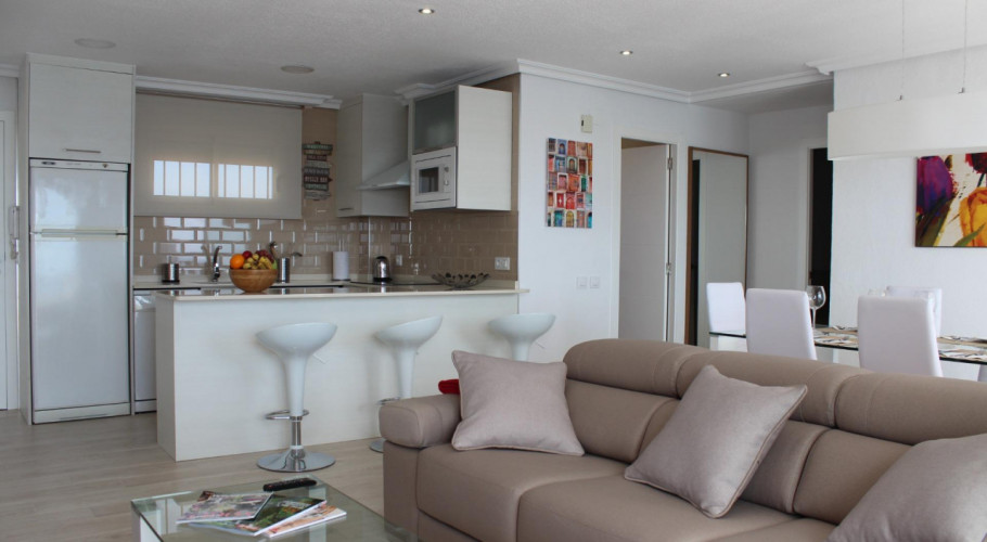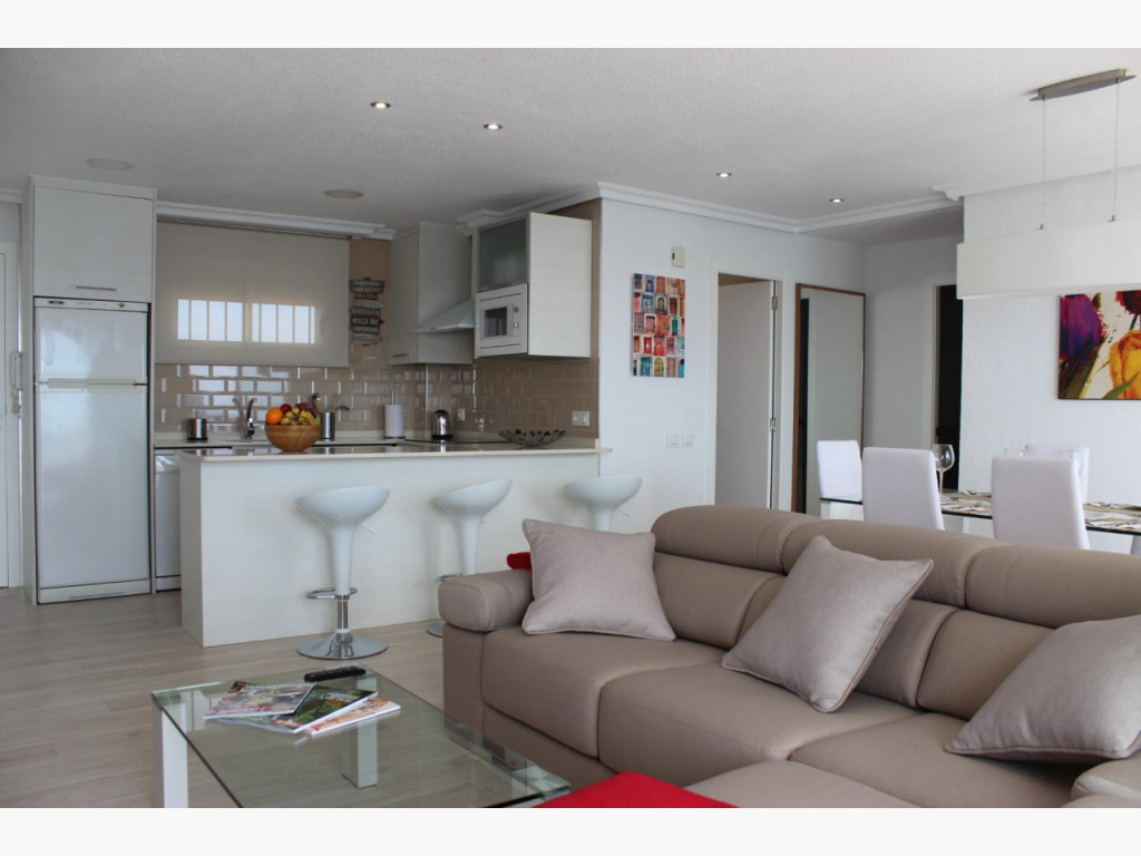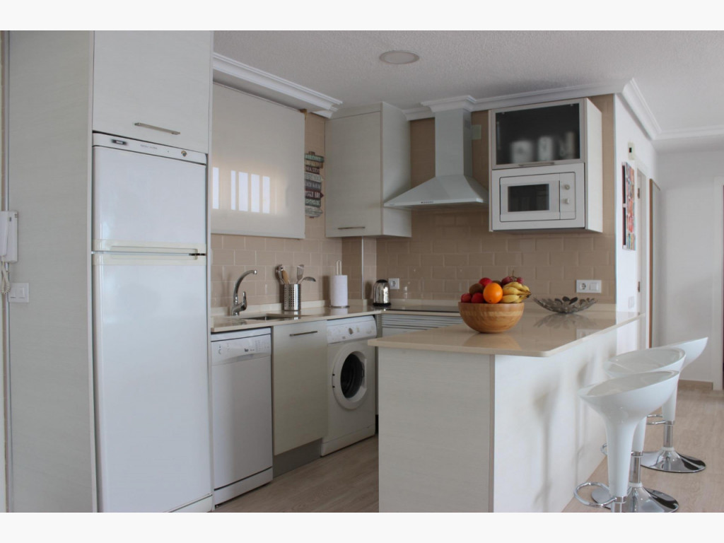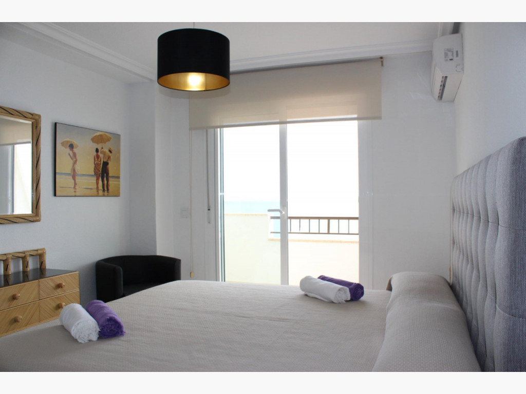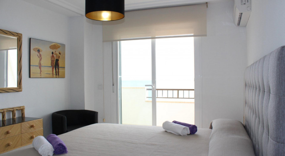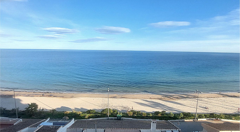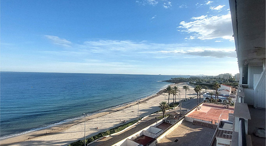 Fascinante apartamento de dos dormitorios y un baño en la urbanización más próxima a las magníficas playas de Mil Palmeras, situado en primera linea de mar donde disfrutar de las insuperables vistas al mediterráneo, justo en su corazón y junto al paseo marítimo; bares, restaurantes y comercios a un paso, dentro de un recinto comunitario totalmente cerrado y protegido con distintos puntos de acceso a la urbanización, grandes espacios comunes, zonas ajardinadas e infantiles lo acompañan, el edificio esta dotado de ascensor y se sitúa tercera planta, entrado encontramos un pequeño recibidor con acceso directo al salón donde ya podemos disfrutar de las maravillosas vistas y junto a él la terraza totalmente cerrada y acristalada aprovechando el espacio del balcón orientado al levante sentirás la brisa del mar, a este también podemos acceder desde el dormitorio principal, junto a él encontramos el baño con ventana propia y a su lado el segundo dormitorio con vistas al entorno de la comunidad. Es un piso muy luminoso y reformado en el 2014 , originalmente tenía tres dormitorios, su cocina es independiente.