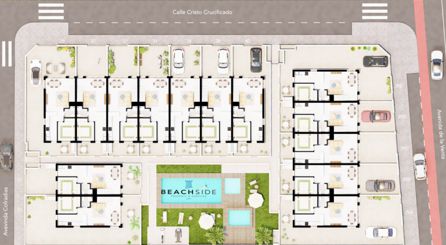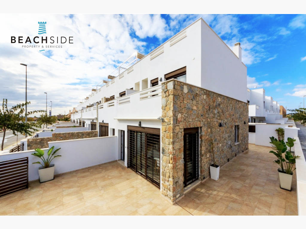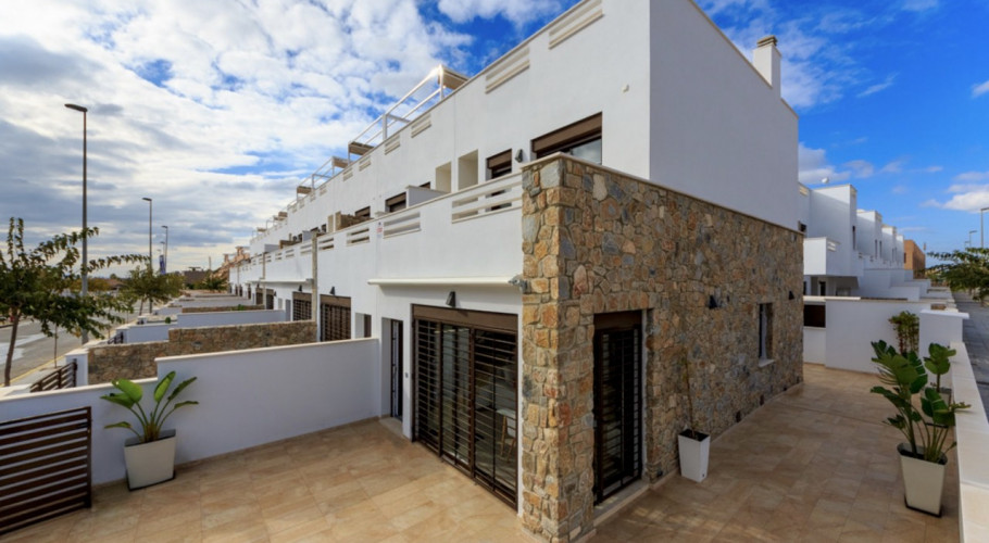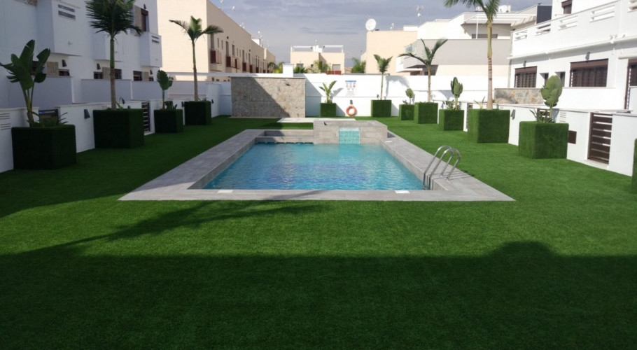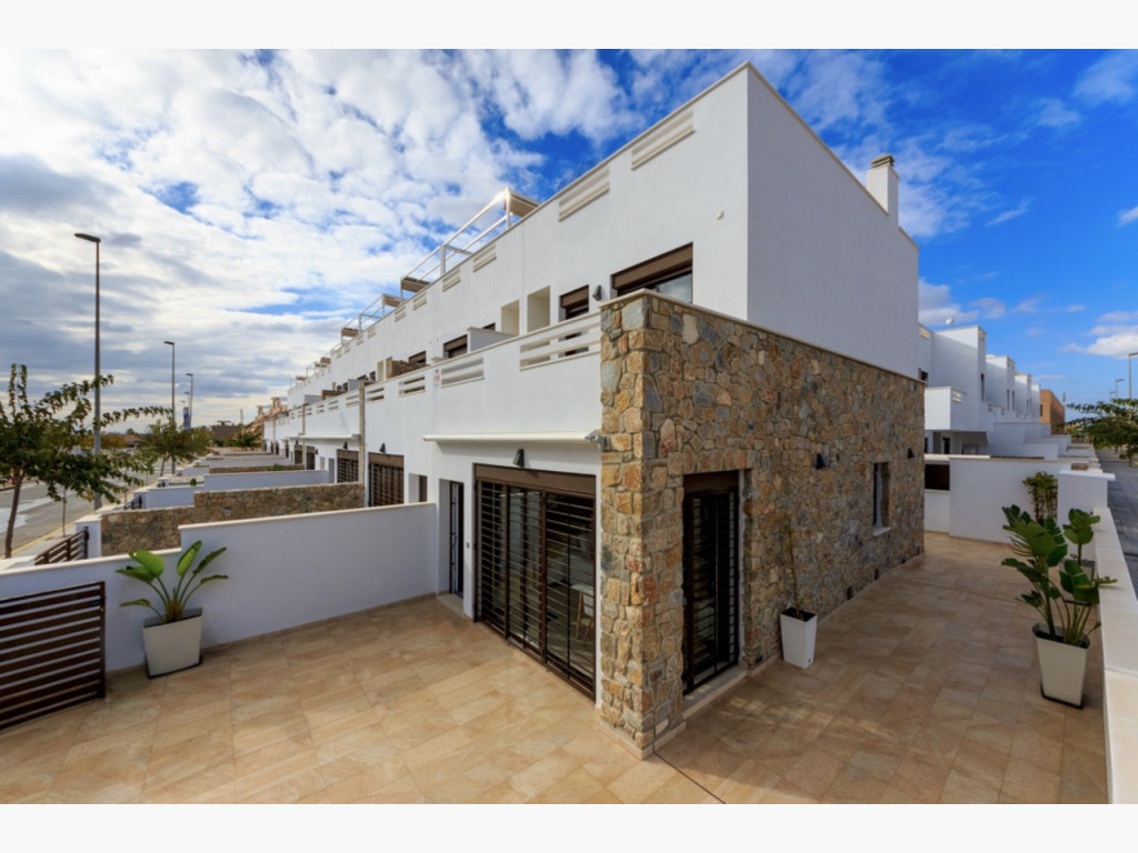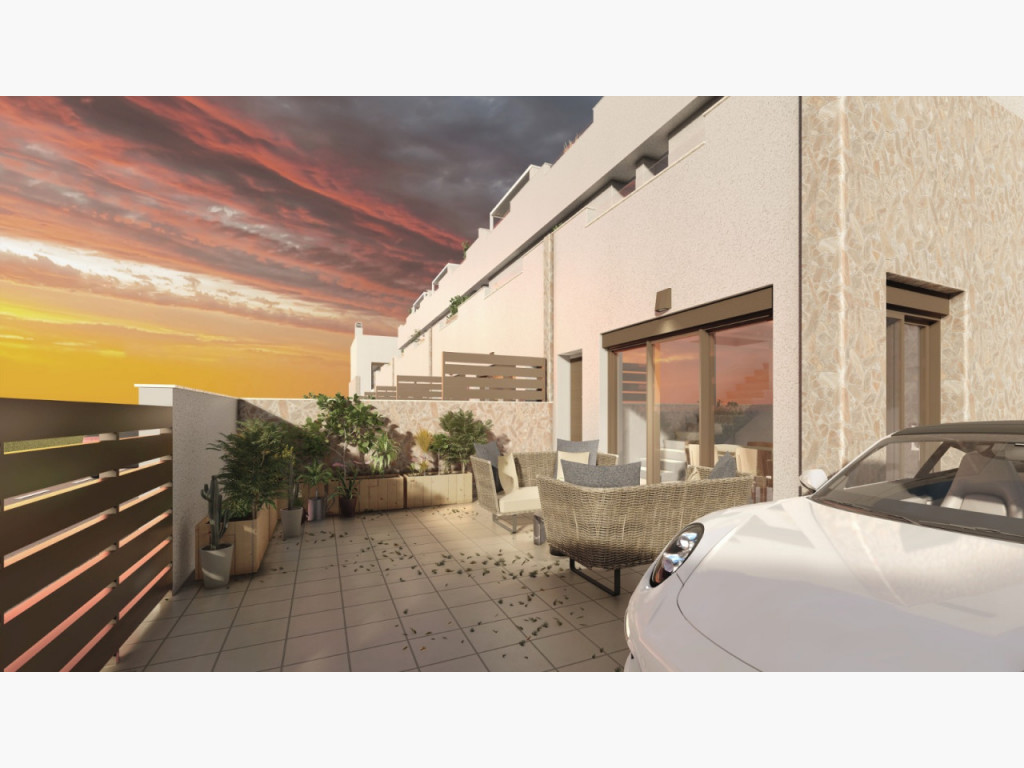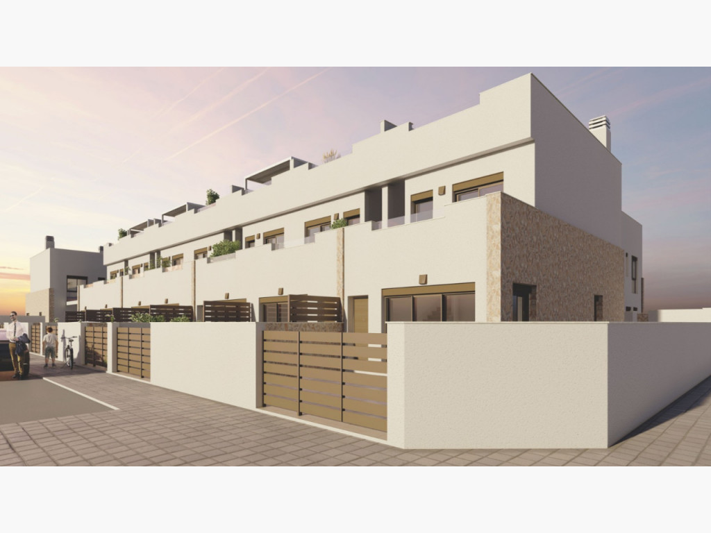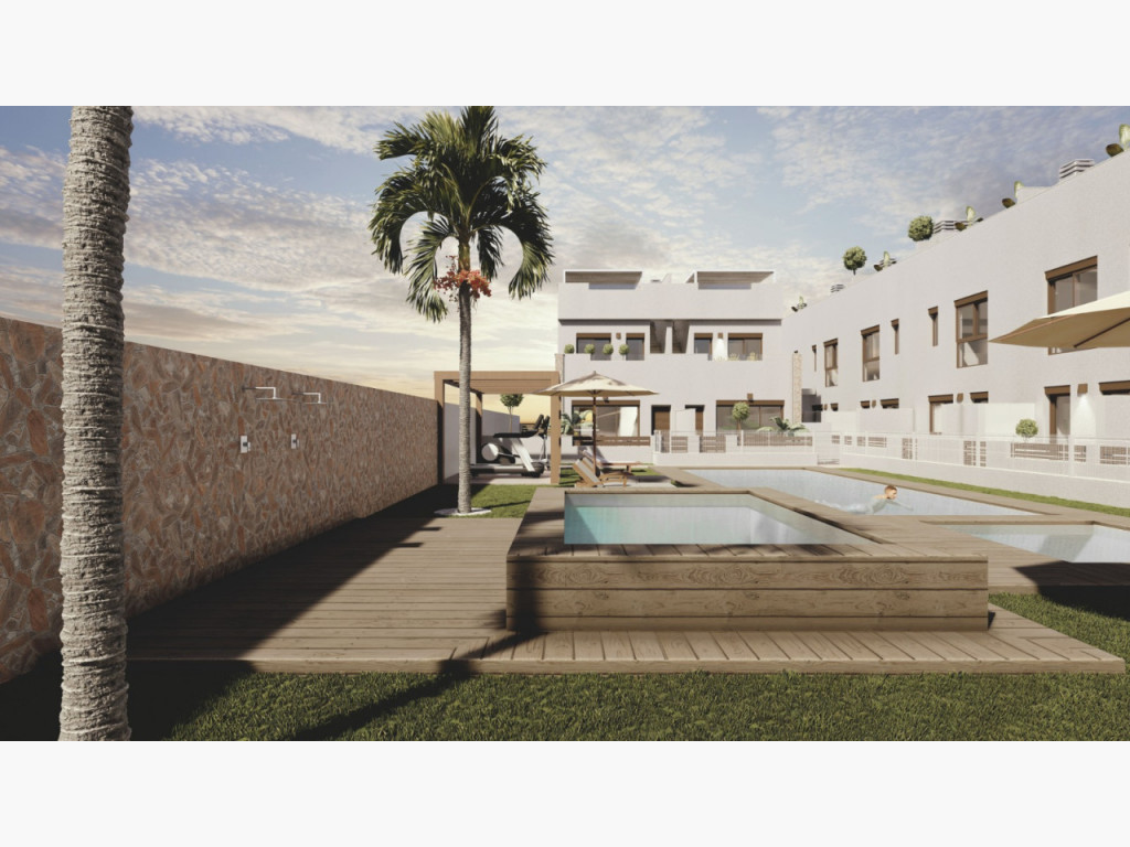 duplex adosado de nueva construcción y modernos diseños, las viviendas proporcionan mucha luz ya que disponen de amplia terraza delantera y espacioso patio trasero con vistas a la piscina y las zonas de jardín comunitario. La promoción de estas viviendas se encuentran muy cercanas al pueblo y rodeadas de todos los servicios; bares y restaurantes, colegios, centros medicos y farmacias, grandes supermercados a un paso del proyecto, son un total de 14 casas adosadas de unos 95m2 que están construidas en una zona tranquila al sur este de el Pilar de la Horadada.