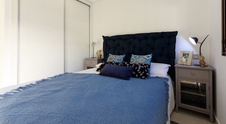 En la planta superior encontramos un distribuidor que da entrada a dos dormitorios dobles más y un baño. el más grande de ellos ofrece un gran balcón terraza con una escalera exterior hasta el solarium de casi 42 m² donde relajarsey disfrutar de las innumerables horas de sol año.
